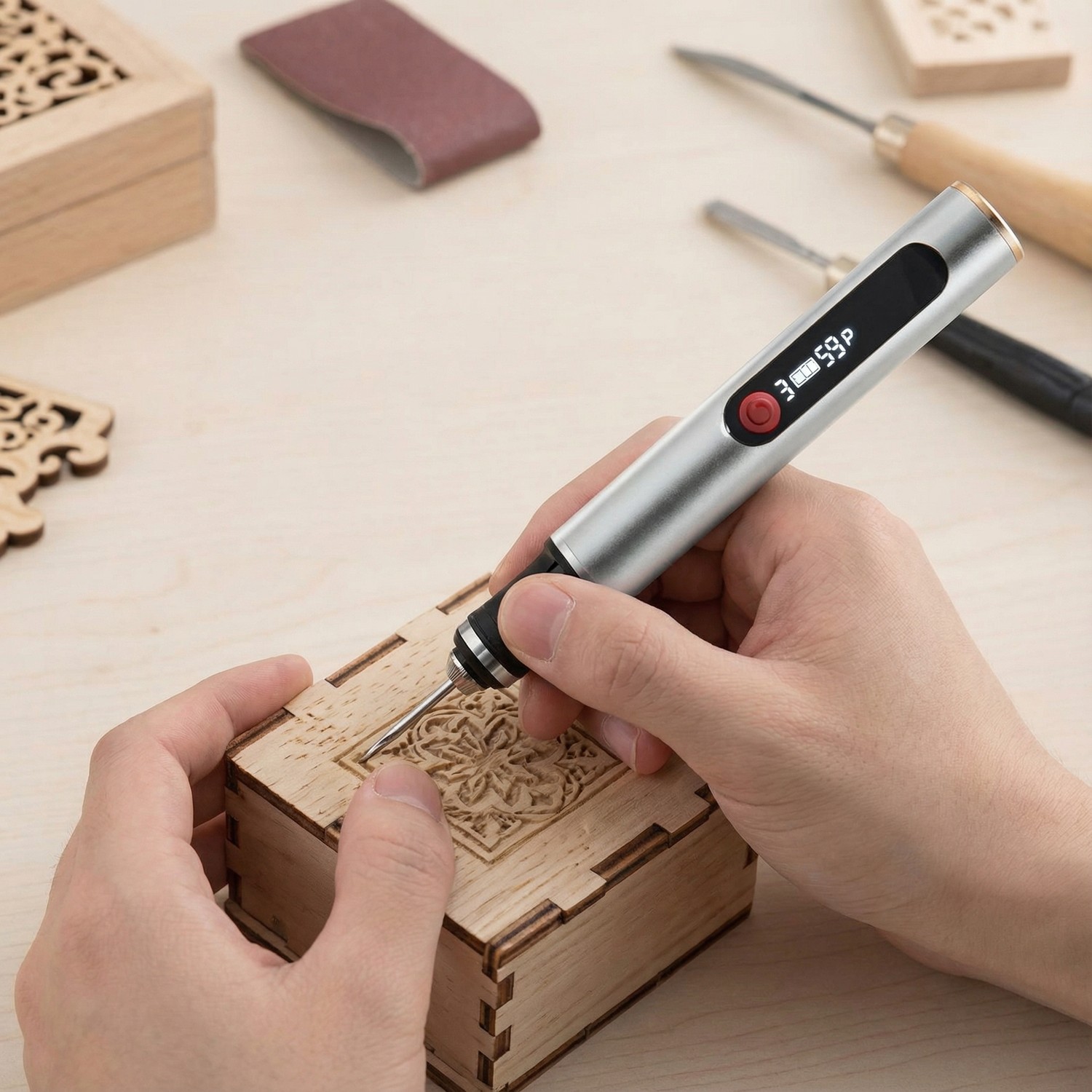 Add elegant patterns, names, or designs to everyday items with ease. This image shows how smoothly the engraving pen works on wood, letting you create clean, decorative details that feel handcrafted and unique. Perfect for personal projects, home décor, or thoughtful custom gifts.
