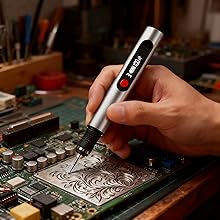 Power on the engraving pen and hold it like a regular pen. Its balanced design helps you stay steady and in control.